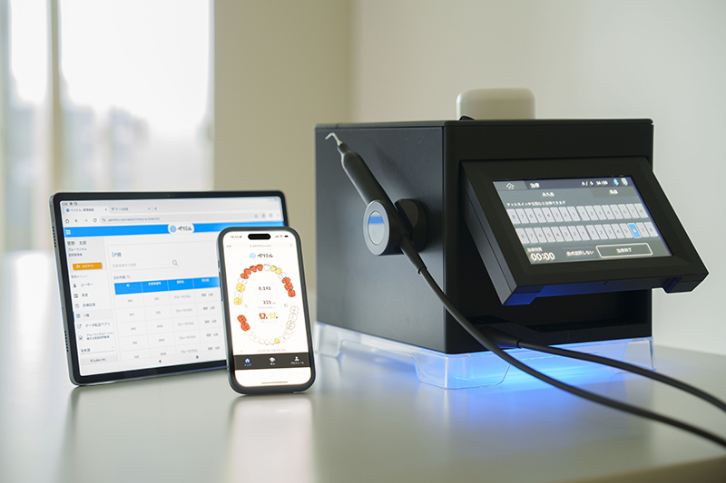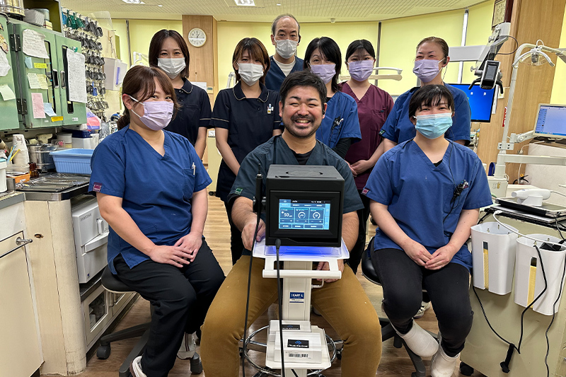 従来、歯周病が進行したケースでは、歯ぐきを切開して歯根を露出させる外科処置や、抗菌薬の使用に頼らざるを得ないことが多く、患者さまには痛みや通院回数の増加など、身体的・精神的な負担が大きくのしかかっていました。 当院では、こうした患者さまの負担を少しでも減らすため、東北大学で開発された世界初・厚生労働省認定の非外科的歯周病治療機器『ブルーラジカルP-01』を導入しています。